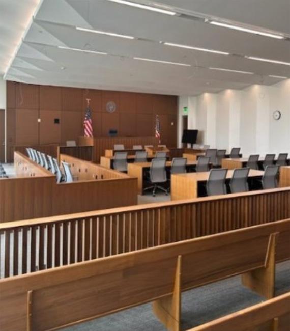 Interior finishes of one of the courtrooms in the Rambo U.S. Courthouse.