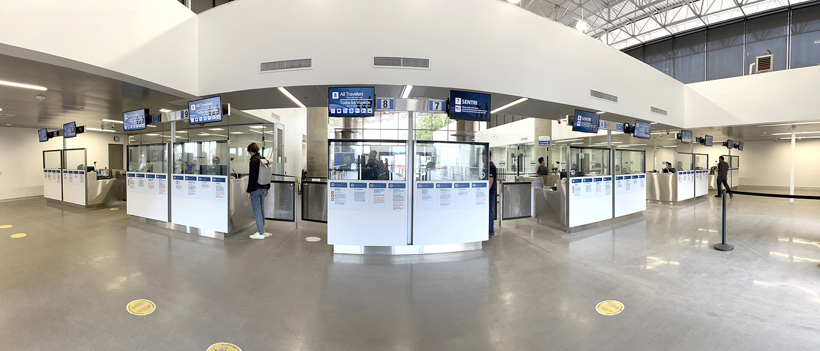 In April 2022, GSA completed improvements to the port’s commercial inspection facilities, constructing a new commercial annex building, improving truck circulation within the port, and increasing the number of commercial inspection lanes from nine to 16. The project also included constructing a new visitor parking lot, an employee parking structure, and additional infrastructure. The final phase of the project will repave Roll Drive leading to the pedestrian area and the entire port modernization is scheduled to be completed in early January 2024.
