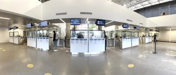 SAN DIEGO, Calif. ㅡ The U.S. General Services Administration (GSA) announces the completion of the pedestrian processing area for entry into the United States. Northbound pedestrian inspection booths were added as part of the expansion project at the Otay Mesa Land Port of Entry (LPOE) in San Diego, California. The project doubled the number of pedestrian inspection booths from six to 12 and was part of the larger $134 million port modernization and expansion project. The significant increase in pedestrian inspection capacity will not only support the U.S. Department of Homeland Security Customs and Border Protection’s (CBP) security mission but will also allow them to operate more inspection booths, facilitate pedestrian processing, and help ease historically long border crossing wait times.