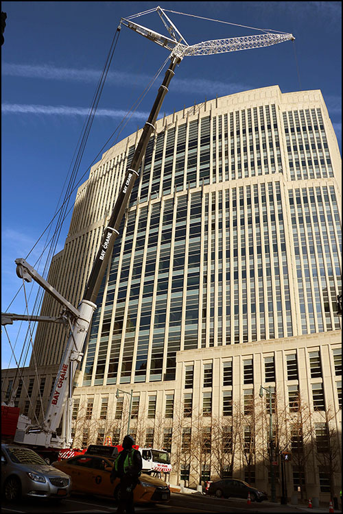 It took three scheduling tries, the largest mobile construction crane permitted in New York City, and dozens of dedicated employees, contract and subcontract workers to pull off the project after hours from Dec. 1–3. The successful installation of the new chiller and other building upgrades are expected to save taxpayers nearly $1 million annually, while also increasing cooling capacity.