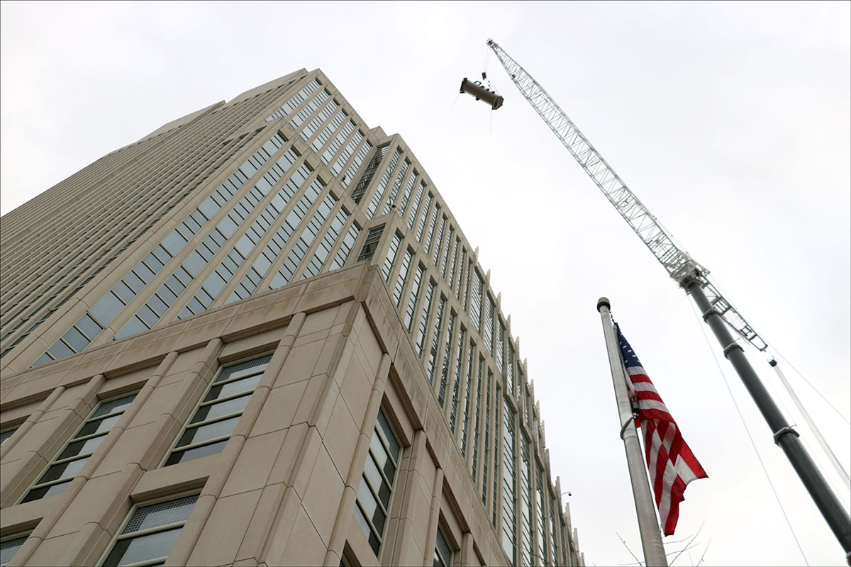 Massive crane fits pieces into place for energy efficient mechanical upgrade at GSA facility in Brooklyn