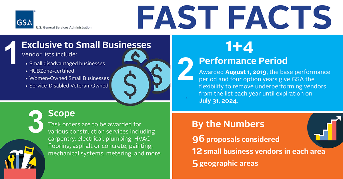 Talbert and other teammates also used a massive marketing effort to find the largest amount of qualified construction service vendors. Now GSA Public Buildings Service contracting officers can solicit and award task orders for repair and alteration projects at GSA-managed properties in the target geographic areas: Nebraska, Iowa, Kansas, as well as Kansas City and St. Louis in Missouri.