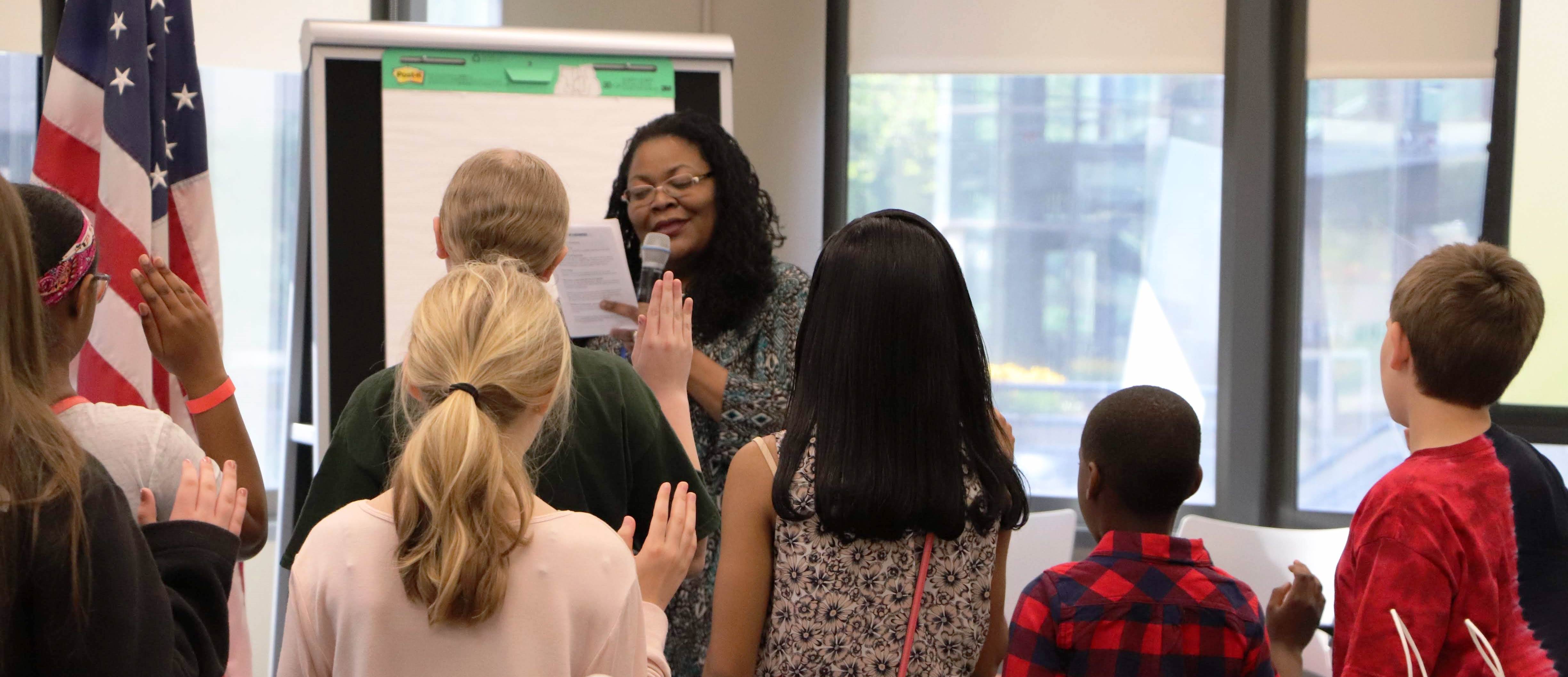 The Heartland Regional Office participated in Take Our Daughters and Sons to Work Day April 25 by swearing in 35 children as new “GSA agents” for the day. The annual event centered around the GSA agents completing their assigned mission. The mission: to uncover evidence to identify various GSA careers, evaluate their own skills and interests, and to select a GSA career for themselves.