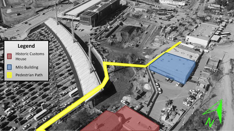 Qué: La Administración de Servicios Generales de los Estados Unidos (GSA por sus siglas en inglés) y el Departamento de Aduanas y Protección Fronteriza (CBP por sus siglas en inglés) reubicaran la instalación actual para el cruce de peatones en dirección norte, ubicada en la parte este de la Garita de San Ysidro, a un recinto provisional que se abrirá a las 12:01 a.m. de la madrugada del lunes 22 de mayo de 2017. Este nuevo cruce temporal de peatones estará localizado dentro del edificio Milo (al norte del actual edificio histórico de Aduanas) y ofrecerá una mayor capacidad de procesamiento de peatones, contando con ocho líneas de inspección. Este nuevo recinto reemplazará el actual cruce de peatones en la parte este de la garita, que se encuentra localizada dentro del edificio histórico de aduanas. Una vez finalizada esta reubicación, el edificio histórico será remodelado como parte del trabajo de construcción de la Fase II.