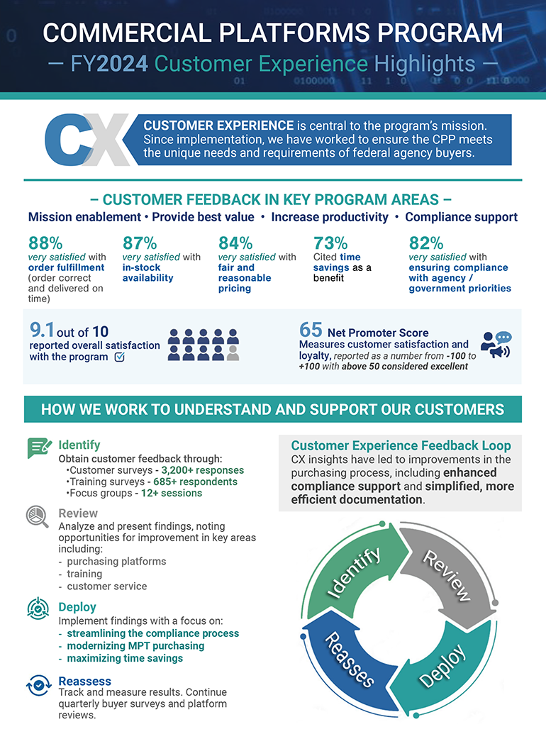 In addition to dedicated government customer support from each platform, the CPP team works closely with agencies to refine and improve the purchasing experience to ensure the program meets their unique needs and missions.