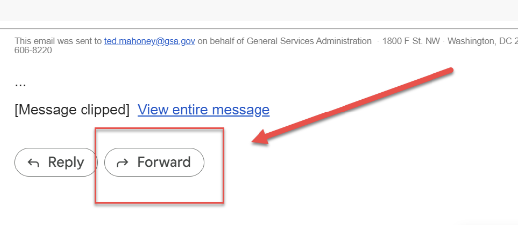 - To compose or forward, in the To field enter ecf@gsa.gov. You will see the displayed address showing the Electronic Contract File.