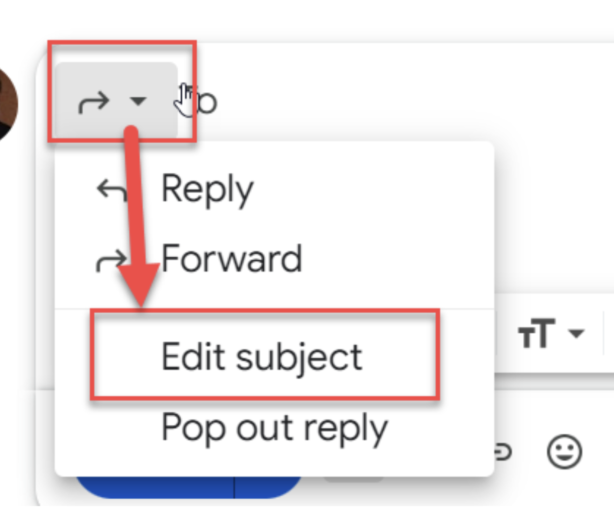 In accordance with standard naming procedures (see PBS Procurement Information Bulletin, or PIB, 18-2 Attachment 6), enter the subject or change the subject of the forward email to reflect the email message contents by opening the Reply menu next to the recipient’s name and choose Edit subject.