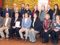 GSA Heartland Regional Administrator Michael Copeland (back left), Region 7 Branch Chief John Robinson (front left), Project Manager Dana Hatfield (back, second from right) and Real Property Disposal Officer Melvin Freeman (back right) pose for a photo with local dignitaries from Knoxville and Marion County, Iowa, after a press conference Jan. 15.