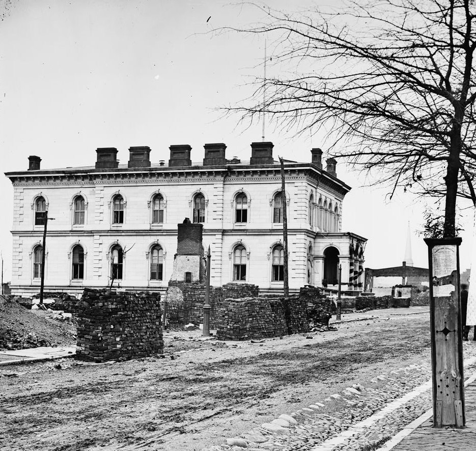 The U.S. Custom House (today the Lewis F. Powell U.S. Courthouse) stands among the ruins of Richmond.
